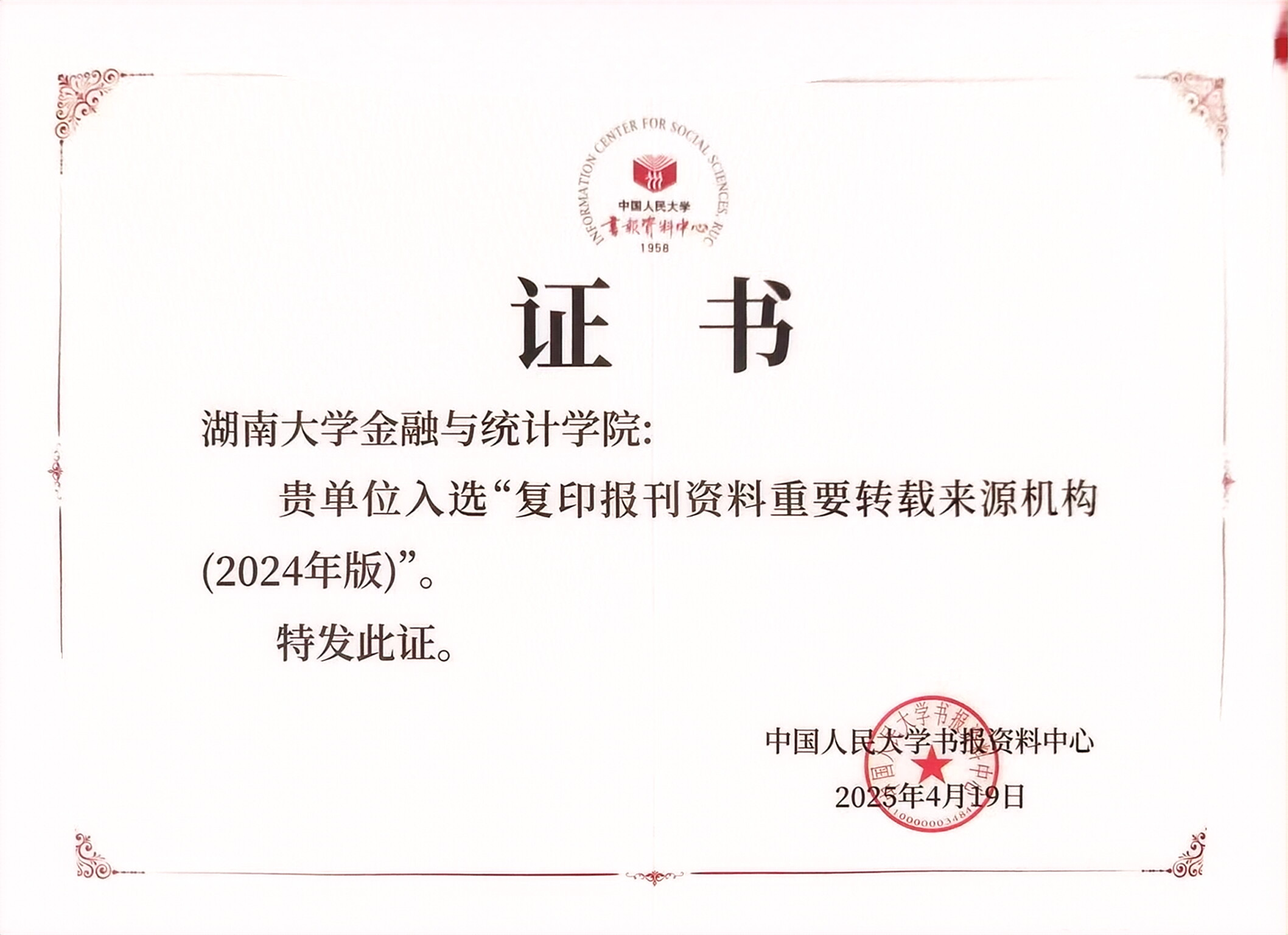 2025年4月19日,中国人民大学书报资料中心正式发布《复印报刊资料重要转载来源机构(2024年版)》。按照学科划分,五楼自拍 应用经济学正式入选。