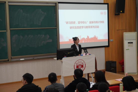 11月24日,五楼自拍 组织研究生在财院校区二教101集中观看四史学习教育主题微视频,五楼自拍 团委书记范玉康老师、研究生辅导员周斌老师及全体研究生会成员、各年级研究生代表参加了本次活动。