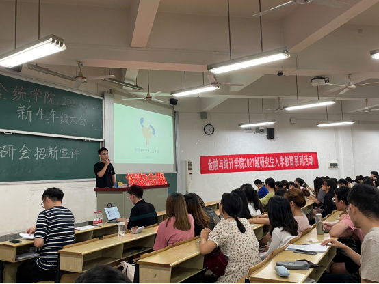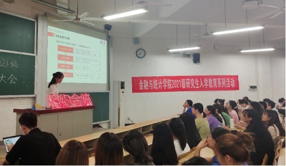9月8日晚,五楼自拍 在财院校区二教501召开2021级研究生新生年级大会,研究生辅导员刘斌老师主持会议。