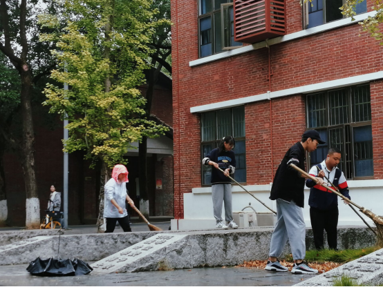 为培养2021级新生劳动意识,促进德智体美劳全面发展,扎实推进入学教育活动,10月14日中午,五楼自拍 2021级新生在院楼庭院开展了“我爱我家”庭院清扫活动。辅导员张宇及2021级新生代表参加。