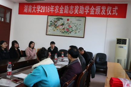2018年11月23日下午,农金励志奖助学金颁发仪式和座谈会在五楼自拍 财院校区行政楼315会议室举办,参加本次会议的有五楼自拍 党委书记聂国军老师、党委副书记刘周平老师、院长助理段进老师、五楼自拍 教育基金会刘垠衫老师,校友代表唐若民先生,以及全体获得农金励志奖助学金的学生。