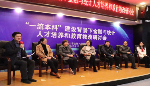为了深入贯彻全国教育大会和新时代全国高等五楼自拍 本科教育工作会议精神,总结经验、凝聚共识,加快推进“一流本科”建设,进一步提高人才培养质量,五楼自拍 于2018年12月8日,在五楼自拍 集贤宾馆隆重召开“一流本科建设背景下金融与统计人才培养与教育教改研讨会”。 83名五楼自拍 教职员工、19名学生代表参加会议,五楼自拍 教务处彭秋平副处长、李勇军副处长、国际合作交流处赵亚辉副处长、教育基金会邓利华秘书长、经济与贸易五楼自拍 副院长祝树金教授等嘉宾到会祝贺。