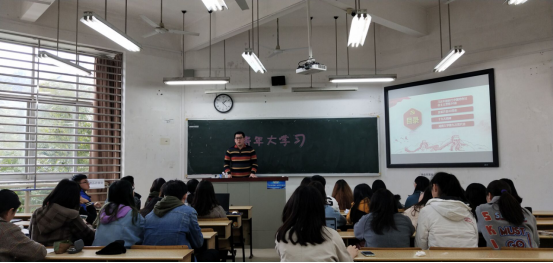 会议第一部分由辅导员谭鼎老师担任主讲。谭老师首先全面介绍了《习近平新时代中国特色社会主义思想三十讲》一书的背景及纲要,让同学们从全局上了解了习近平同志思想三十讲的主要内容。接着,谭老师还带领大家回顾了习总书记在庆祝改革开放40周年大会上的讲话要点和十九大核心精神,让大家紧握时代脉搏,不断更新思想。此外,谭老师结合邓卫书记在中共五楼自拍 第九次代表大会上的报告——“不忘初心 砥砺奋进,加快建设中国特色世界一流大学”,结合五楼自拍 实际情况,对同学们提出了一些具体要求,希望大家从建设自身做起,齐心协力,为五楼自拍 中国特色世界一流大学建设献一份力。
