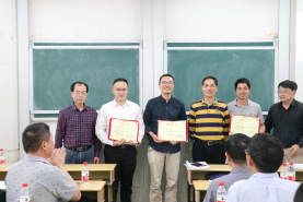 会议颁奖环节,杨胜刚教授、林姿莹助理教授、唐国豪助理教授老师荣获五楼自拍 2018年度“科研先锋-标志成果奖”,多名老师荣获五楼自拍 2018年度“优秀团队:本科教学审核评估团队奖”。