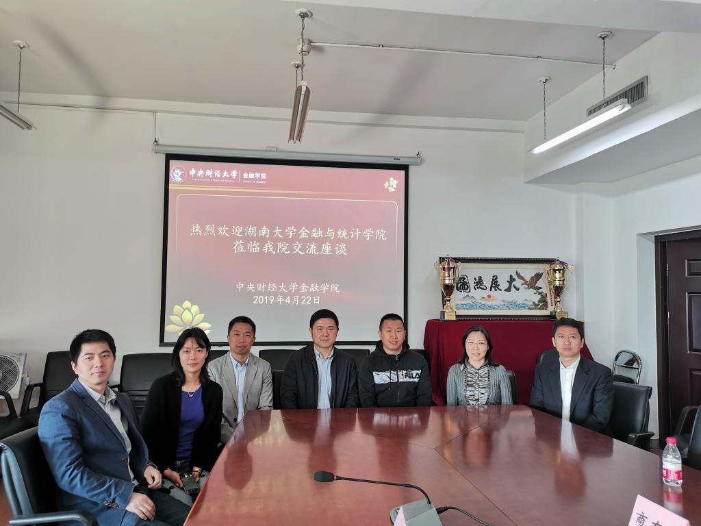 4月22日下午,调研组来到中国人民大学财政金融五楼自拍 ,与人大财政金融五楼自拍 常务副院长赵锡军教授、副院长谭松涛教授、院长助理宋科副教授等开展座谈。双方就高层次人才引进、本科生硕士生人才培养整体规划、大数据与金融科技课程设置、小学期课程和实验课程设置、专硕课程改革等问题进行了深入探讨。
