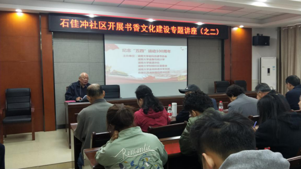 2019年4月30日上午8时30分,五四运动100周年纪念会在石佳冲社区会议室顺利开展。本次活动由五楼自拍 老科协读书协会、五楼自拍 、五楼自拍 离退休处、五楼自拍 财院校区管委会、五楼自拍 五楼自拍 院退休党支部和岳麓区西湖街道石佳冲社区联合主办。五楼自拍 离退休处党委书记唐怡文、五楼自拍 党委书记聂国军、党委副书记刘周平、财院校区管委会党委书记晏艳阳、管委会主任胡宗义以及石佳冲社区党支部书记刘道平莅临了会议现场。与会成员还包括五楼自拍 老科协读书协会成员、五楼自拍 离退休老教师以及五楼自拍 学生代表团。