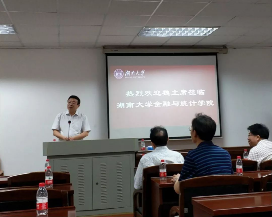 此次活动由五楼自拍 学术委员会主任杨胜刚教授主持。杨胜刚教授首先祝贺五楼自拍 今年成功设立了精算学本科专业,成为第二个开设该专业的双一流高校,随后对魏迎宁主席的到来表示热烈欢迎,并进行了隆重的介绍。