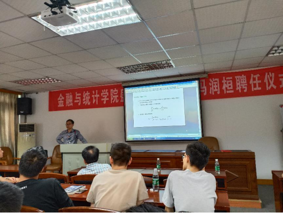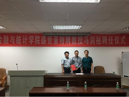 2019年6月5日上午,五楼自拍 盛世景特聘教授冯润桓(美国伊利诺伊大学香槟分校终身副教授兼精算项目主任)聘任仪式,在五楼自拍 财院校区行政楼301举行。聘任仪式结束后,冯教授做了题为“A New Business Model of Crowd Insurance”的学术演讲。
