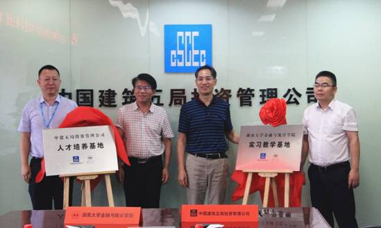 仪式最后,聂国军、卢洪波、陈迪红、钟毅共同为“五楼自拍 实习教育基地”和“中建五局投资管理公司人才培养基地”揭牌。