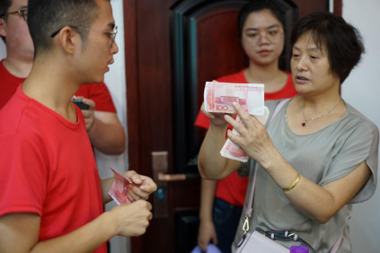宣讲会主体由校歌合唱、PPT宣讲两个部分组成,其中又穿插着有奖问答等互动环节,以充分调动大家的积极性。宣讲会上最精彩的环节可谓是由“+乡计划”五楼自拍 调研团队员自编自导的相声,用贴近生活的例子、精心设计的情节、接地气的口吻,生动形象地向各位乡亲展现了一场真实而欢愉的“电信诈骗案”,更是赢得了在场所有人的热烈掌声。在辨认假币的环节,积极热情的乡亲主动上台,准确地复述出了辨别真假币的要点,我们也为其送上了精心准备的礼品。