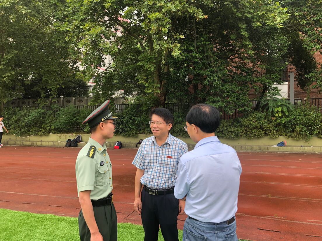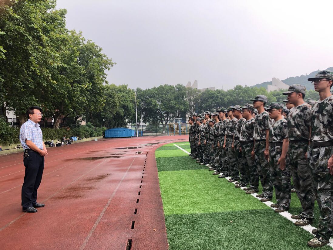 虽然天气阴雨,雾霭蒙蒙。但是每一位同学都热情似火,标兵方阵、正步方阵、匕首操方阵,秩序井然。聂书记和刘副书记来到军训场地,详细了解了今年军训的工作情况,亲自查看了新生方阵的训练,亲切慰问了军训教官和新生助理并且向奋斗于军训一线的各位教官和新生助理们表示感谢。