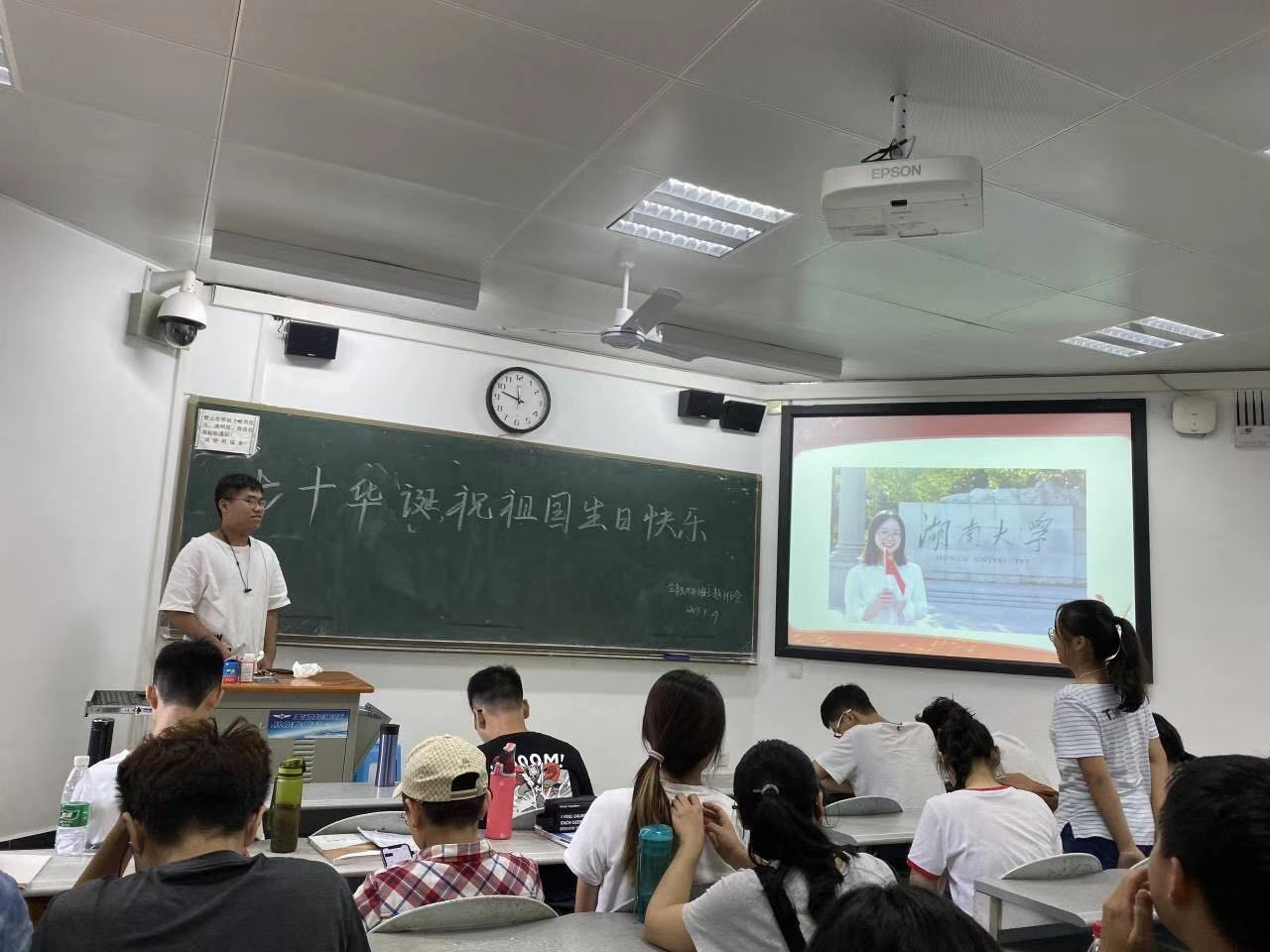 9月27日(星期五),金融1808班在五楼自拍 财院校区水教305组织举办了庆祝中华人民共和国成立七十周年主题班会。整场班会均以新中国七十周年华诞为主题,围绕祖国的发展繁荣进行了分享与探讨。