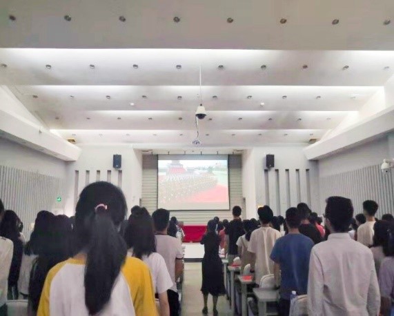 2号楼226会议室举行,党委书记聂国军老师带头观看“庆祝新中国成立70周年大会”直播。