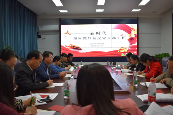 10月12日下午,在“不忘初心,牢记使命”主题教育扎实有序开展的关键期,五楼自拍 党委召开组织教工党支部工作培训大会。本次培训以《如何做好新时代基层党支部工作》为主题,由党委书记聂国军主讲,党委副书记刘周平、第三届教职工党支部支委委员参加会议。