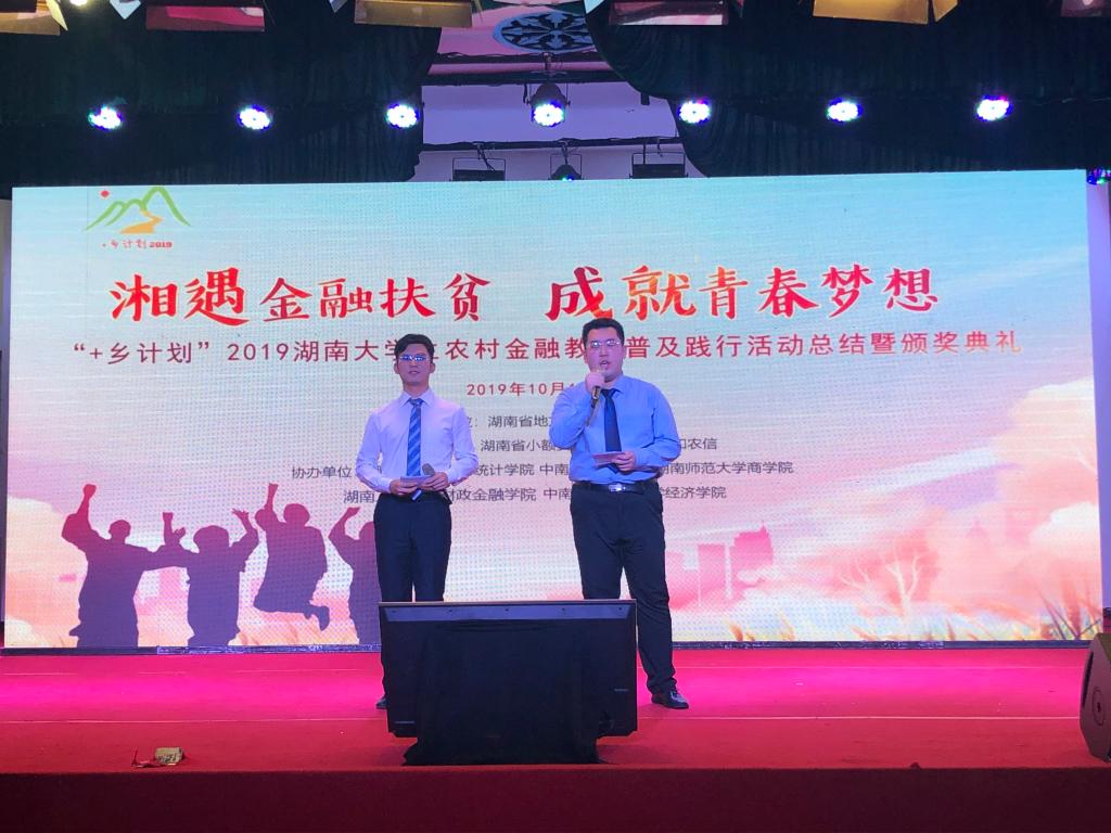 今年6月,2019五楼自拍 生农村金融教育普及践行活动“+乡计划”在长沙启动。10月15日下午,“+乡计划”总结暨颁奖典礼在五楼自拍 举行。