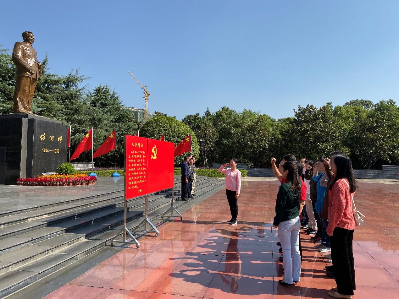 随后,全体党员来到铜像广场瞻仰任弼时铜像,在党支部书记谢君的带领下面向党旗庄严宣誓,重温入党初心。