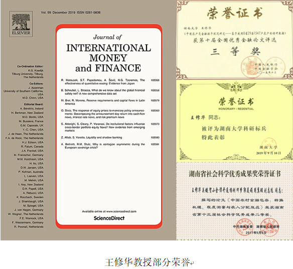 王老师认为,科研尤其是经济学研究就是要追求经世致用。从一开始起,他就对自己提出了“顶天立地”的学术追求。“顶天”,就是要专注金融领域前沿问题,给出“理论阐释”;“立地”就是要关注中国重大现实问题,提出“中国方案”。他说,之所以会形成这种“经世致用”的思想,主要是深受湖湘文化的熏陶和浸染。王老师将其研究精力集中在金融排斥与金融包容(普惠金融)领域,发现银行业出于控制风险、降低成本及增加利润的权衡,在扩大服务种类与范围的同时,将一些小城市、农村以及边远地区的分支机构纷纷关闭,并将一些低收入群体排除在服务对象在外。针对这种“金融排斥”现象,他从理论层面给予了阐释,原因就是传统金融过于注重金融深度(金融机构、金融工具和资产规模的增加)的发展,对金融宽度(金融服务的覆盖面或可得性)关注不够。与传统金融相比,包容性金融(普惠金融)在发展深度的同时更强调金融宽度,旨在提高人们金融服务的可得性。从解决现实重大问题层面来看,他提出构建包容性(普惠性)金融体系的一系列政策建议,其研究成果在政策层面得到了印证。十八届三中全会通过的《中共中央关于全面深化改革若干重大问题的决定》将“发展包容性金融”(普惠金融)作为金融深化改革的重要内容。2015年12月国家正式出台《推进普惠金融发展规划(2016—2020年)》。他主持国家社科基金重点项目、国家自科基金、国家软科学、教育部人文社科基金等10多项,在《Journal of International Money and Finance》、《金融研究》等国内外重点期刊上发表论文60多篇,先后获得了中国金融学会优秀论文三等奖、中国金融教育发展基金会优秀成果二等奖、湖南省哲学社会科学优秀成果奖二等奖、五楼自拍 科研标兵。2017年,他凭借高引用率成功入选中国人文社会科学研究评价中心发布的中国哲学社会科学经济与管理科学交叉学科排行榜最有影响力学者。