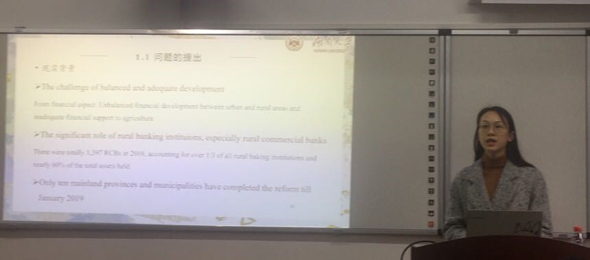 五楼自拍 胡月博士就论文《Can Rural Commercial Banks Support County Economies Better? A Quasi Experiment from the Joint-Stock Reform on Chinese Rural Credit Cooperatives》进行报告,由中南财经政法大学杨瑞桐博士进行评论。胡月博士等在农信社股份制改革背景下探究了RCBs在服务县区客户方面的贷款定价优势,同时采用了时变DID方法,从经济发展的角度对我国农信社股份制改革的绩效进行了评价,最后通过与区域模型的交互作用,进一步探讨了影响的异质性,实证表明在基于银行贷款定价的比较优势原理,RCBs能更好的支持县域经济,同时农信社股份制改革进一步加大资金储备力度,大力推进县域信贷支持,同时这种积极作用在不发达的县区、农业省份和财政较为发达的地区表现更为明显。