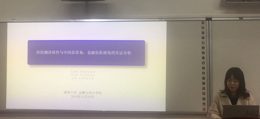 中央财经大学的邱亦霖博士就论文《供给侧异质性与中间品贸易:金融危机视角的实证分析》进行汇报,由五楼自拍 罗鹏飞助理教授进行评论。邱亦霖博士等以金融危机为切入点考察了中间产品进口对纯内销企业总产出的差异性影响,实证结果表明金融危机发生后,由于供给冲击的影响,中间品进口对纯内销企业总产出的正向作用明显减弱,结合上下游产业链分析样本期间纯内销企业上游行业产能削弱了中间品进口对于企业总产出的正向边际作用,同时增强了对企业总产出的正向作用,这在一定程度上缓解了中间品供给所带来冲击的影响。