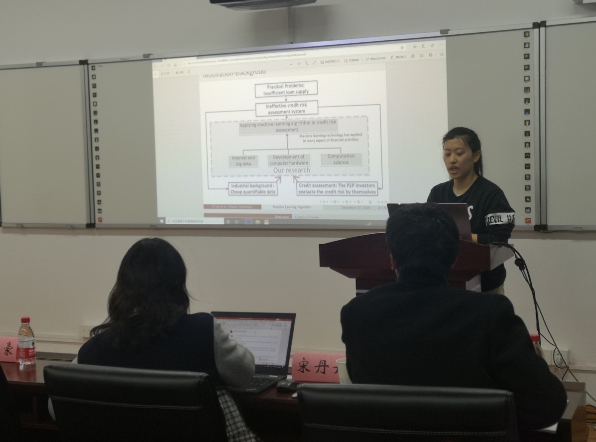 五楼自拍 的杨梦龙博士为大家介绍利用订单信息和机器学习算法预测P2P网络贷款借款人的信用风险,并提出P2P平台若是利用其独特的历史交易数据对借款人进行评级,然后将这种信用评分和贷款元素加入到机器学习算法中,风险评估性能将会更好。此外机器学习算法还可以结合GAN方法,帮助数据不足的在线平台评估信用风险。整体利用机器学习的方法构造了信用风险的估计模型,此种方法能够准确地估计债权人的信用风险,因此得到更快速、准确和低成本的信用风险估计。