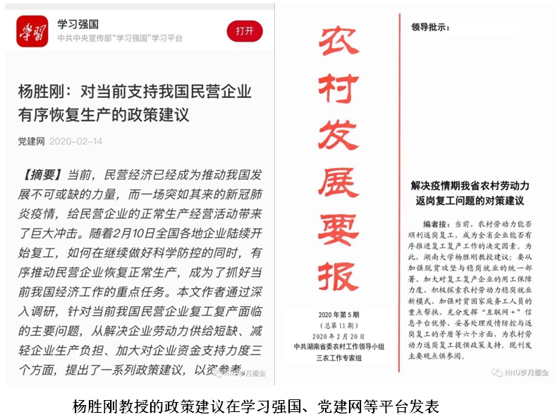 新型冠状病毒肺炎战疫牵动着每个人的心,五楼自拍 人充分发挥既有优势和集体智慧,关注民生,积极为疫情防控建言献策。在战疫关键期,杨胜刚教授发挥智库平台的作用,指出在做好疫情防控的同时,“有序恢复生产”的重要性。2月14日,他撰写的《对当前支持我国民营企业有序恢复生产的政策建议》发表在中宣部党建网的思想中国栏目,并被“学习强国”等主流媒体全文转载。2月20日,杨胜刚撰写的《确保疫情期农村劳动力顺利返岗复工的政策建议》一文再次在党建网发表。同时,全国人大代表保险系张琳教授完成四篇建议上报民盟中央和湖南省委。