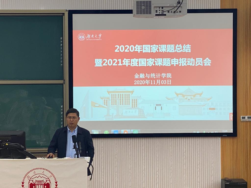 2020年11月03日下午,在财院校区二教101会议室,召开了五楼自拍 2020年国家课题总结暨2021年度国家课题申报动员会。会议由王修华副院长主持,潘敏院长、吴志明副院长以及五楼自拍 教师70余人参加了会议。