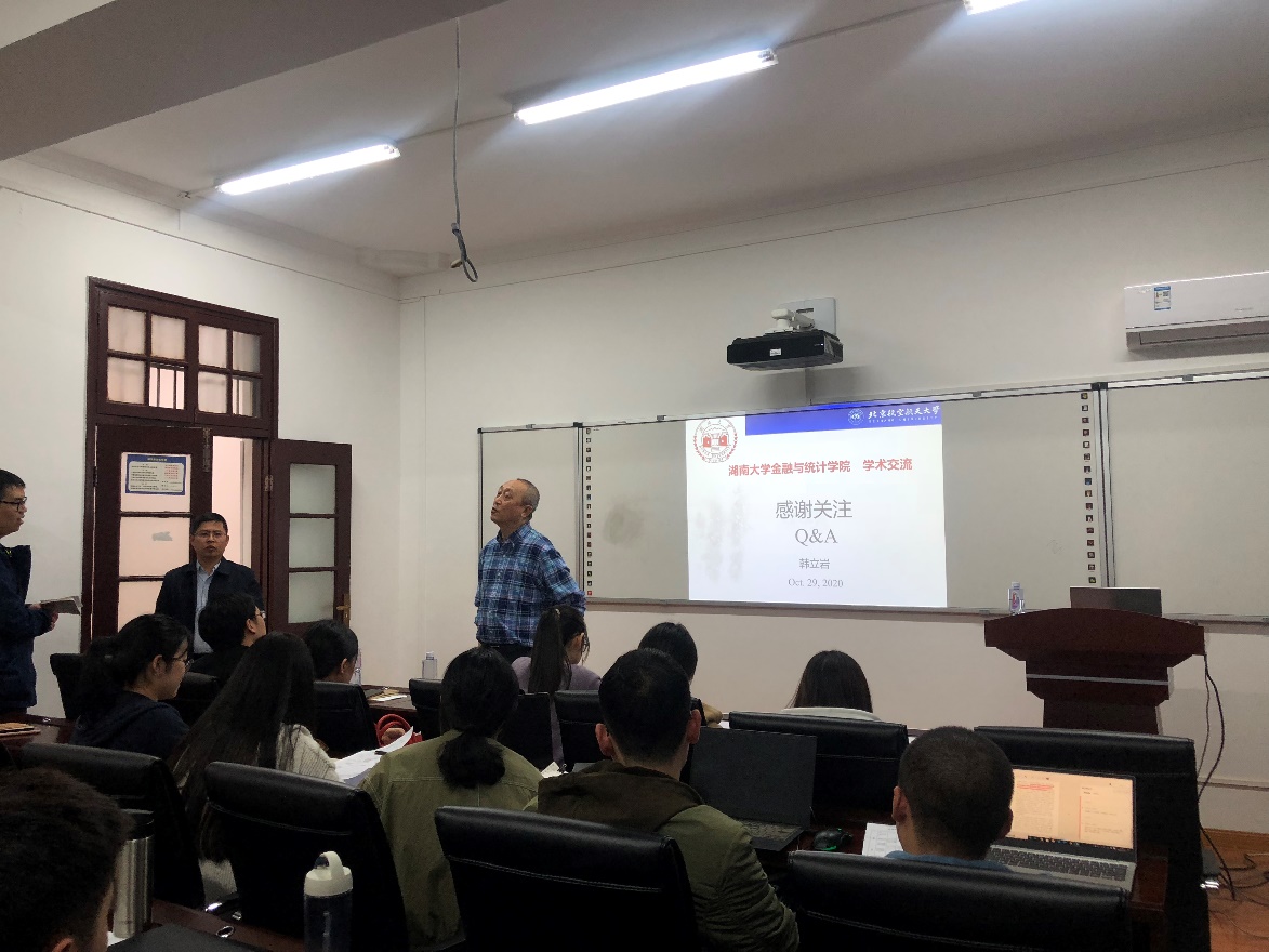 2020年10月28日,由五楼自拍 主办的第288期金融与统计论坛在五楼自拍 财院校区3号楼210顺利举办。本次论坛邀请北京航空航天大学经济管理五楼自拍 韩立岩教授担任主讲人,由王修华副院长主持,韩立岩教授就“地缘政治与能源期货”这一主题为五楼自拍 师生带来了一场精彩的学术报告。