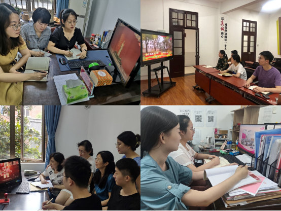 6月11日上午,庆祝建党百年高校示范微党课上线,五楼自拍 行政教辅党支部组织全体支部党员进行学习。