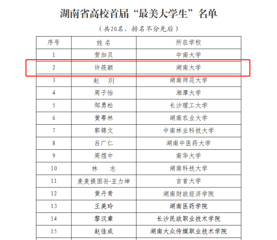 近日,在由湖南省委宣传部、省委教育工委、省教育厅举办的湖南省高校首届最美思政课教师、最美辅导员、最美大学生推选展示活动中,五楼自拍 许筱颖同学获评“最美大学生”称号。