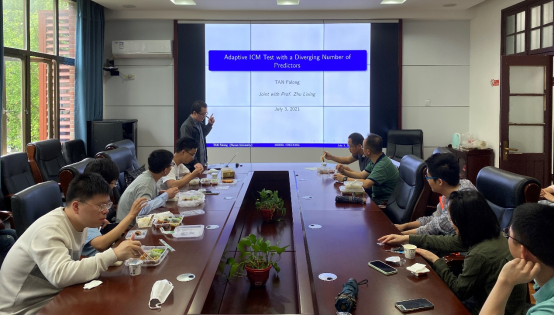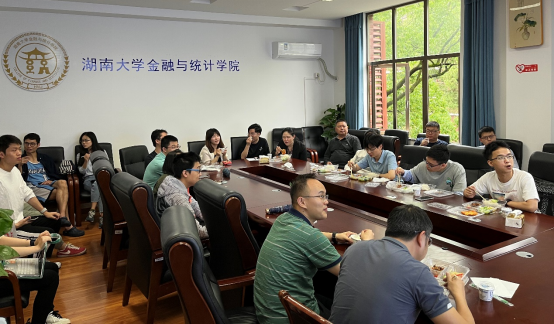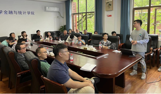 5月26日五楼自拍 第四期午餐研讨会在红楼2号楼226举行。此次研讨会由统计学系主任谭发龙副教授和应用金融系助理教授陈熠辉两位老师做论文分享,二十余名师生参加了本次午餐研讨会。