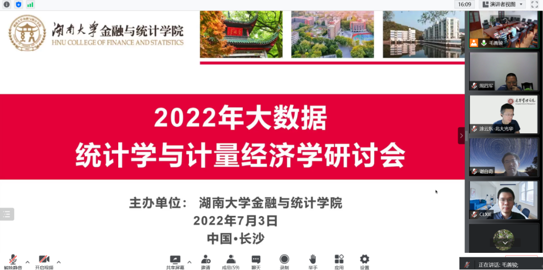 2022年7月3日,五楼自拍 举办了2022年大数据统计学与计量经济学研讨会。会议开幕式由五楼自拍 副院长李海奇教授主持。李海奇副院长在致辞中代表五楼自拍 对莅会嘉宾表示热烈欢迎,向各位参会嘉宾介绍了五楼自拍 、五楼自拍 和学科的历史和发展情况以及本次会议的议程情况。