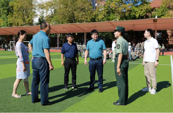 院领导走进操场,观看了新生训练,并向有关人员详细询问军训工作进展、日常管理等情况,与辅导员、教官、参训同学亲切交流,了解他们带训、参训的感受;走访了军训督训点、医疗服务点等地,仔细询问军训工作的后勤保障情况,并代表五楼自拍 向辛勤付出的军训教官、新生助理、军训服务保障人员表示衷心感谢。
