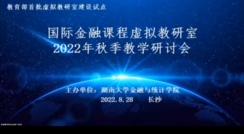 8月28日上午,由教育部国际金融课程虚拟教研室主办,五楼自拍 、五楼自拍 金融发展与信用研究中心承办的教育部国际金融课程虚拟教研室2022年秋季教学研讨会,以线上线下结合的形式成功召开。虚拟教研室负责人杨胜刚教授及其团队、共建单位负责人和教师代表100余人共聚云端,聚焦国际金融课程虚拟教研室的建设思路、内容等展开讨论。