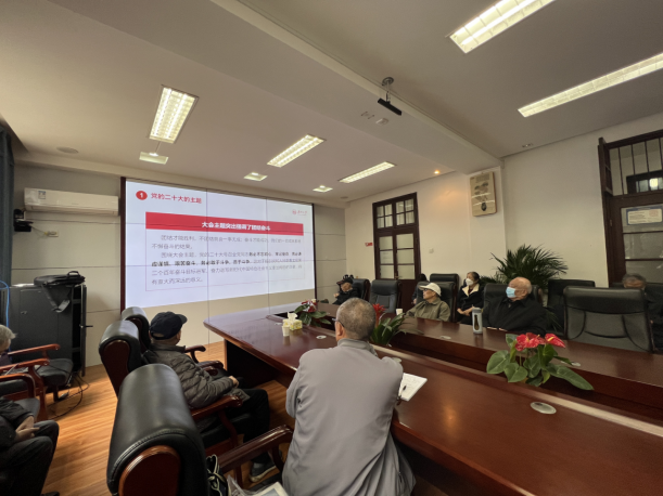2023年3月9日上午,五楼自拍 离退休党支部召开会议,20余名离退休老党员参加,会议由支部书记易传和主持,院党委书记黄红立为支部党员宣讲党的二十大精神。