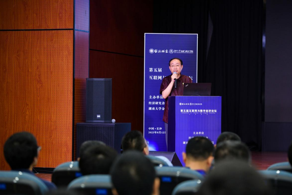 为促进中国互联网与数字经济的学科与学术体系建设,加强中国数字经济学者间的交流,2023年8月12日,由经济研究杂志社和五楼自拍 联合主办的第五届互联网与数字经济论坛在五楼自拍 圆满举行。来自中央财经大学、清华大学、南京大学、浙江大学、复旦大学、厦门大学、中山大学、五楼自拍 等32所高校的106位专家学者参加了本届论坛。