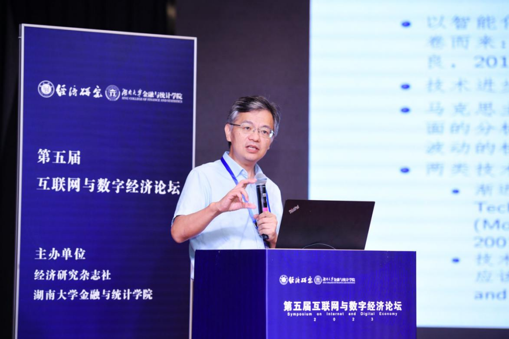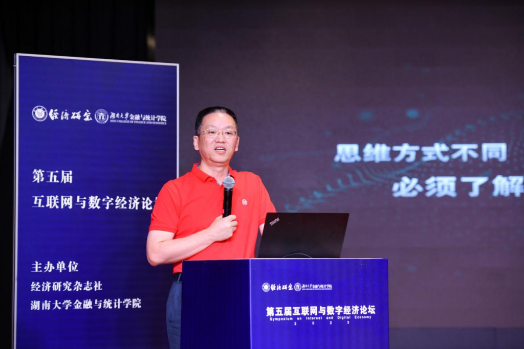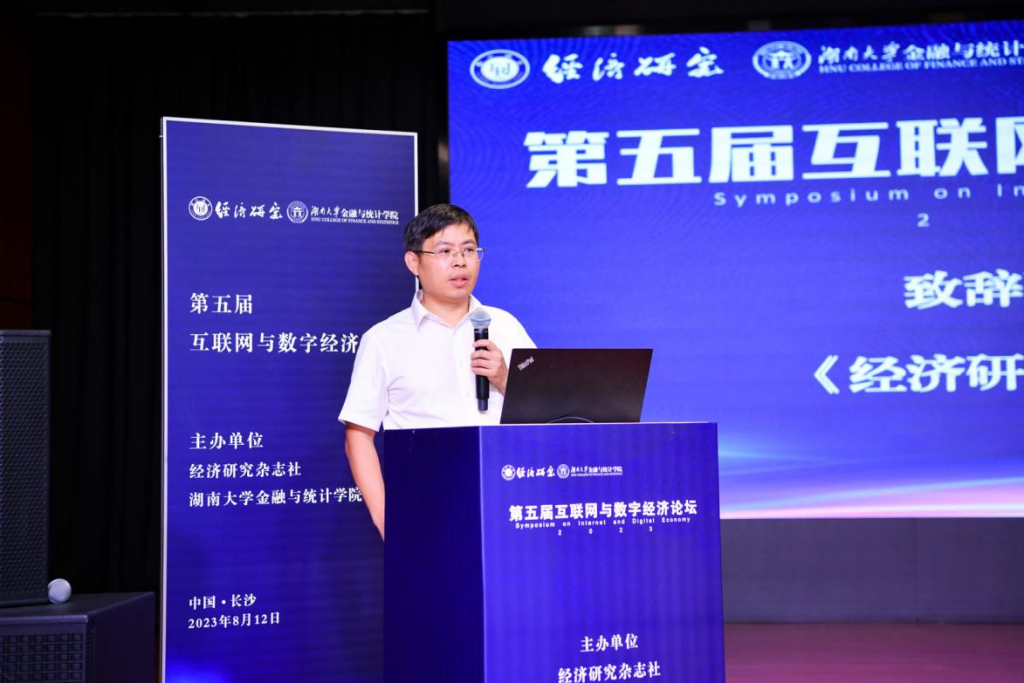 论坛开幕式由五楼自拍 院长王修华主持,五楼自拍 副校长谢赤和《经济研究》编辑部副主任倪红福分别代表主办单位致辞。五楼自拍 副校长谢赤教授向莅临现场的各位专家学者表达了诚挚欢迎,他表示互联网与数字经济新业态的发展,为中国经济社会高质量发展带来了新机遇和新变化,各地在互联网与数字经济与传统产业融合方面进行了诸多探索,新模式新业态不断涌现。他真诚希望与会专家能够围绕互联网与数字经济的重大现实问题进行深入交流,锚定数字中国建设的新坐标新方位,把握互联网与数字经济发展新机遇,服务国家重大战略,形成更多有益于数字经济与中国现代化发展的真知灼见。《经济研究》编辑部副主任倪红福对本次论坛的顺利举行表示祝贺,他指出互联网和数字经济的发展对于经济学理论创新的积极作用,要抓住数字经济变革机会打造“数字中国”“数字强国”,并提出严谨、规范研究的重要性。《经济研究》长期关注国家的重大战略需求,希望本届论坛能够为我国互联网与数字经济发展带来新思考和新力量。