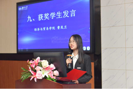五楼自拍 院长王修华致欢迎词。他讲述了“财经教育奖励基金”的演变过程和奖项内容,基金的设立是广大校友激励在校优秀学生立志成才、鼓励青年教师爱岗敬业、感恩大学恩师、支持母校事业发展的爱心之举,体现了广大校友热爱母校、薪火相传的担当和情怀。同时他寄语获奖学子:当前面临百年未有之大变局,又处在“两个一百年”奋斗目标历史交汇点上,要接续和传承这份情怀、担当和责任,努力成为新时代经世致用的领军人才。