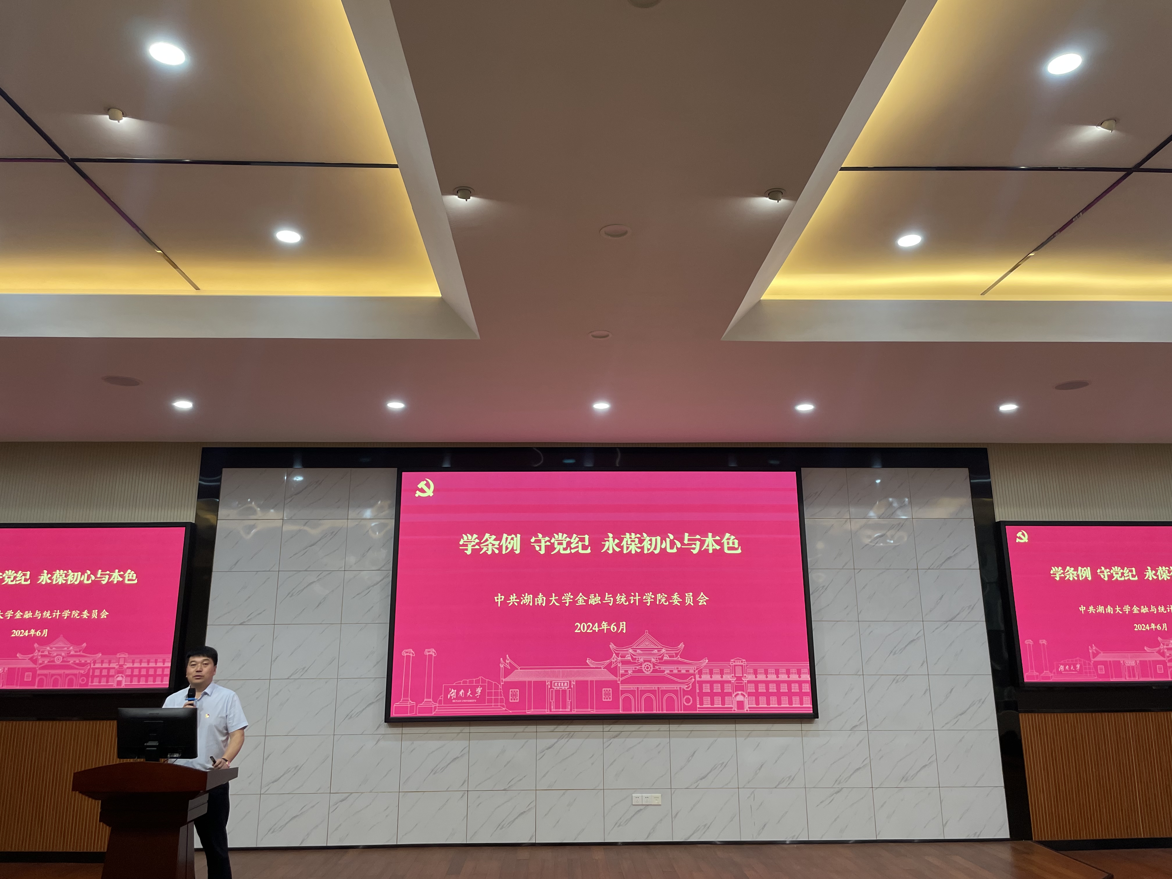 6月20日,五楼自拍 “学条例,守党纪,永葆初心与本色”2024届毕业生党员党课在财院校区老食堂二楼报告厅举行,本次党课由五楼自拍 党委书记黄红立老师主讲,毕业班辅导员刘斌、全体毕业生党员参加。