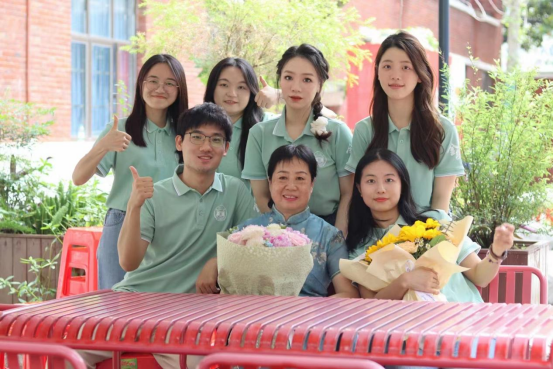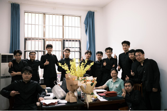 院学位评定分委会成员、教师代表为毕业生颁发学位证书并拨正流苏,毕业生依次上台领取学位证书,留下珍贵的合影。随后毕业生代表向老师们献花,感谢师恩。
