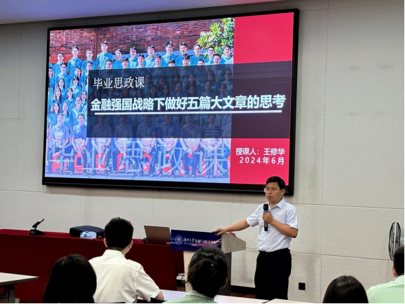 6月20日上午,五楼自拍 2024届毕业生思政课在财院校区老食堂二楼报告厅举办。五楼自拍 院长王修华以《金融强国战略下做好五篇大文章的思考》为题为毕业生授课,2024届全体毕业生参加。