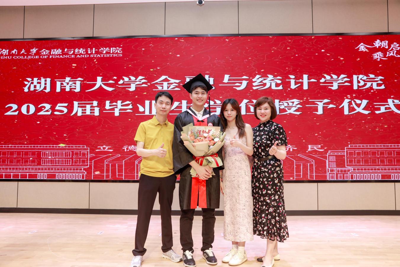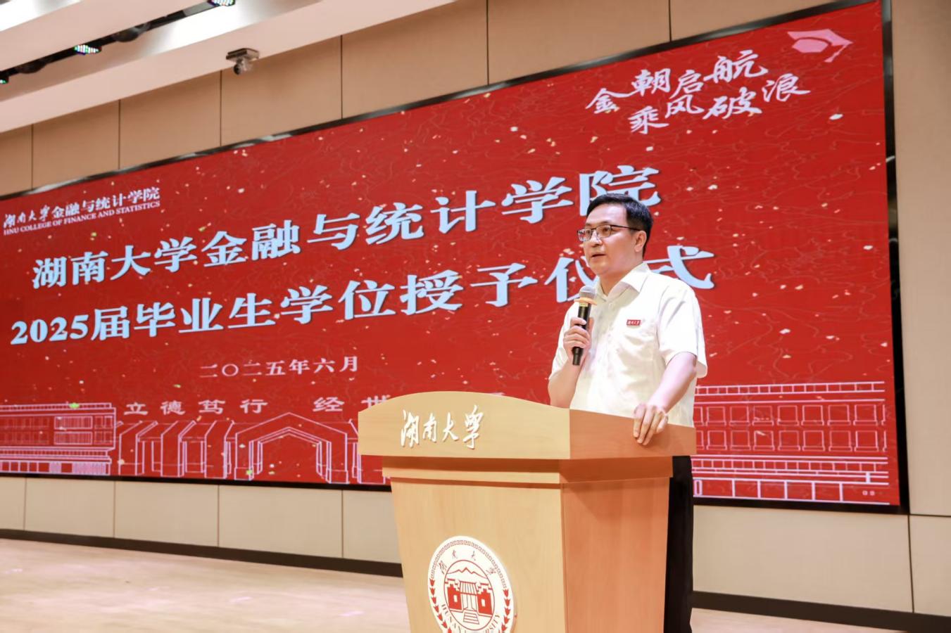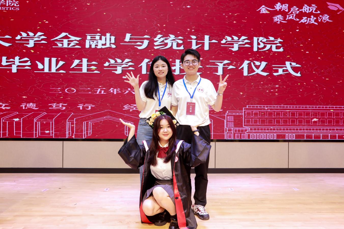 2025届毕业本科生代表陈婉蓉、毕业研究生代表的张人中依次发言,回顾、怀念五楼自拍 五楼自拍 的青春岁月,感恩金融黄埔的悉心培养和热心帮助,希望大家在新的赛道上继续拼搏奋斗。