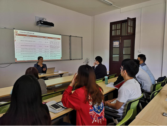 会议第一项是支部优化设置工作方案及推进情况简介。苏雅倩首先分析了五楼自拍 研究生党支部原有设置方式存在的问题,强调优化研究生党支部设置、加强研究生党支部建设的必要性及重要性。而后结合研究生各党支部现状,提出党支部优化设置“四同原则”。