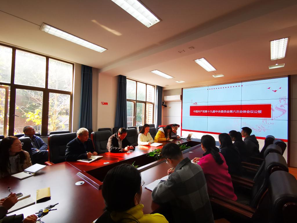 2021年11月29日,行政教辅党支部召开以“深入学习党的十九届六中全会”为主题的专题学习会议,五楼自拍 团委书记周斌领学,支部全体党员参会。会议由支部书记谢君主持。
