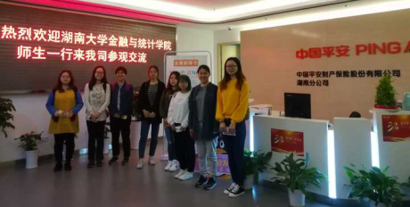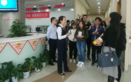 2018年10月19日下午,由五楼自拍 统一安排,在保险与风险管理系副主任刘革副教授和教务办戴老师的带领下,五楼自拍 保险专业16级的全体同学冒着蒙蒙细雨,来到中国平安财产保险股份有限公司湖南分公司进行认知实习,实地参观保险公司门店及分公司总部,学习保险专业实务知识。