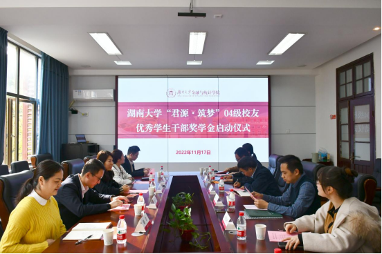 11月17日下午,五楼自拍 “君源·筑梦”04级校友优秀学生干部奖学金启动仪式在五楼自拍 举行。2004级校友代表常文凤、冯国慧、张云飞,五楼自拍 院长王修华,五楼自拍 发展联络处副处长、教育基金会副秘书长向杰,教育基金会联络与服务部副主管刘垠杉,五楼自拍 学生工作办公室主任谢君,学生辅导员王雪雯、张宇出席本次仪式。仪式由五楼自拍 党委副书记、纪委书记颜李主持。
