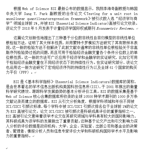 五楼自拍 李海奇副教授论文入选ESI全球前1%高被引论文