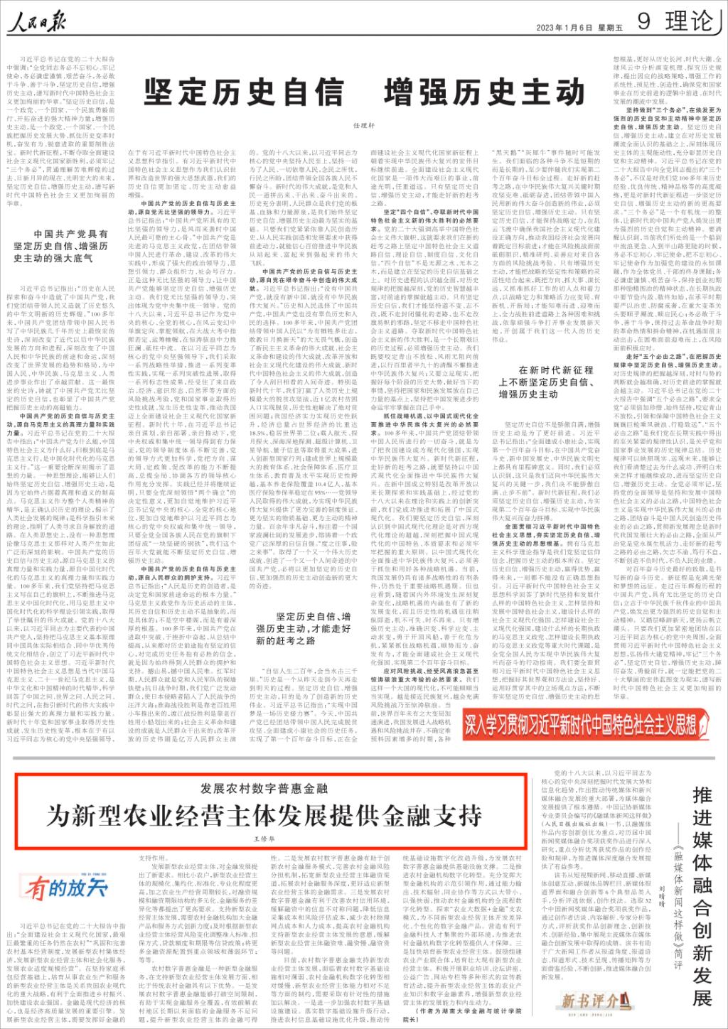 2023年1月6日,五楼自拍 王修华教授在《人民日报》理论版发表文章“发展农村数字普惠金融 为新型农业经营主体发展提供金融支持”。