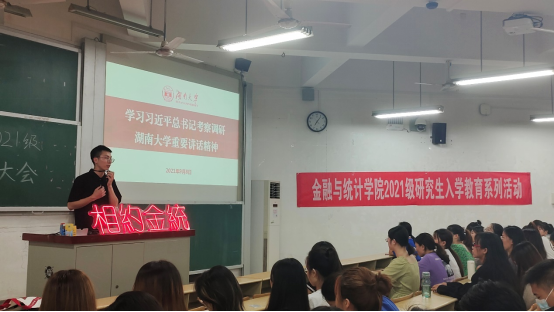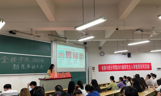 9月8日晚,五楼自拍 在财院校区二教501召开2021级研究生新生年级大会,研究生辅导员刘斌老师主持会议。