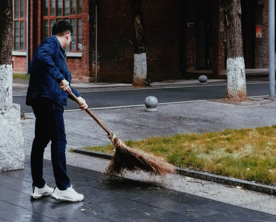 同学们在进行了细致的分工后,纷纷拿起扫把在自己负责的区域里进行认真、细致的清扫,同时互相配合以提升工作效率。