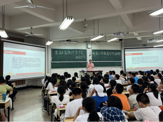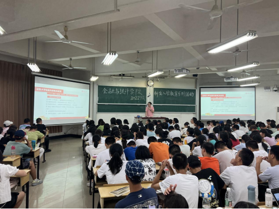 9月13日晚,五楼自拍 于财院校区第二教学楼举办2022级新生入学教育系列活动之“学生培养与日常事务主题讲座”,辅导员周斌主讲。